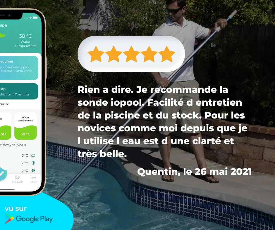 Iopool est une entreprise liégeoise qui développe et commercialise une solution connectée pour la gestion de votre piscine ou spa. EcO, la sonde connectée d’iopool, est l’assistant indispensable pour l’entretien de votre piscine ou spa, sans prise de tête ni perte de temps. De plus, iopool propose un service de livraison à domicile de tous les produits et accessoires nécessaires pour assurer une baignade agréable et sûre tout au long de l’année.
